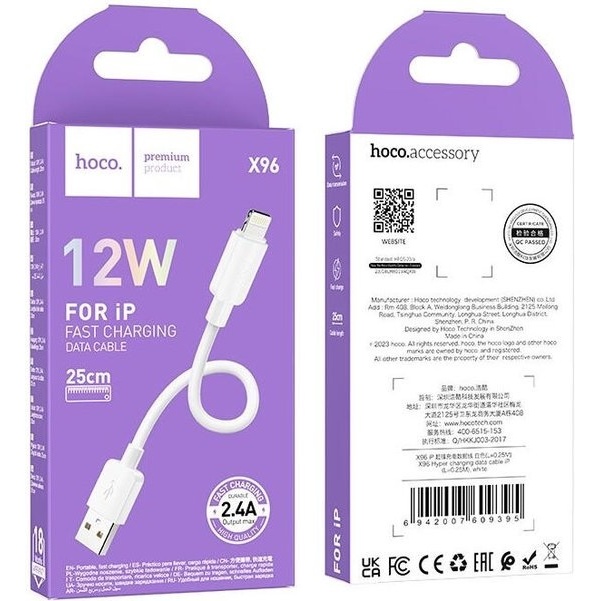 Cable Lightning 25Cm Hoco X96 Blanco
