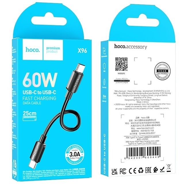 Cable PD USB-C 25Cm Hoco X96 Negro