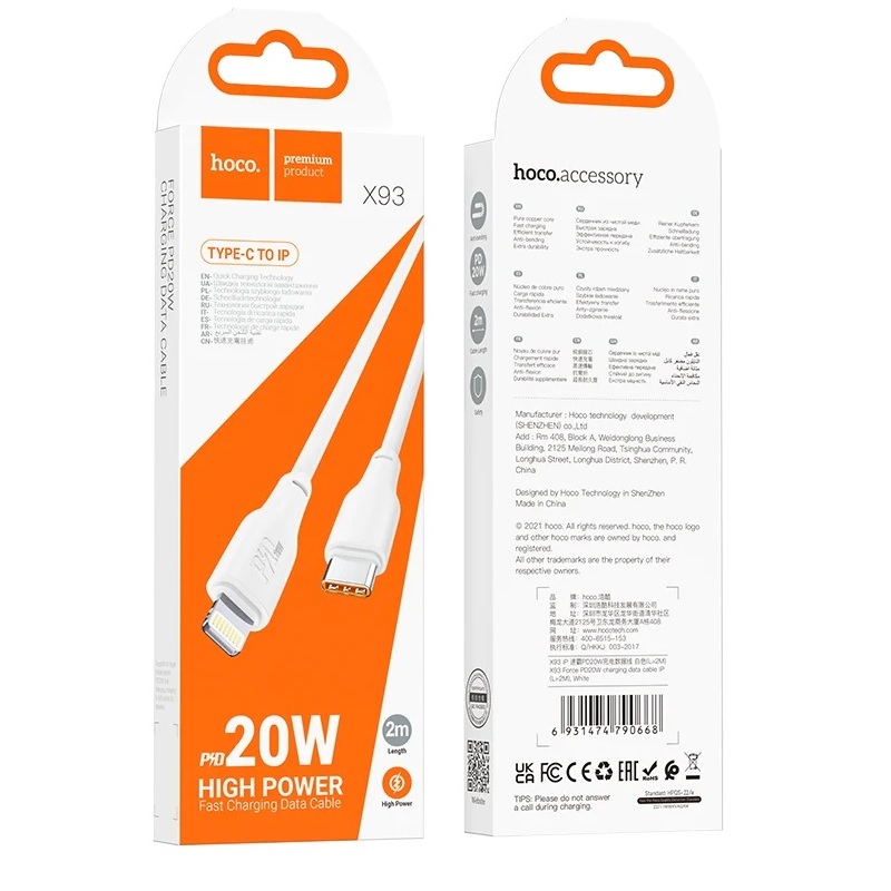 Cable PD Lightning 20W Hoco X93 2M Blanco