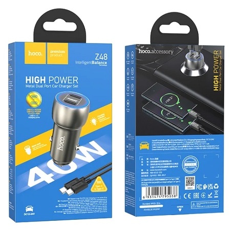 Cargador Auto PD 40W + Cable Usb-C Hoco Z48