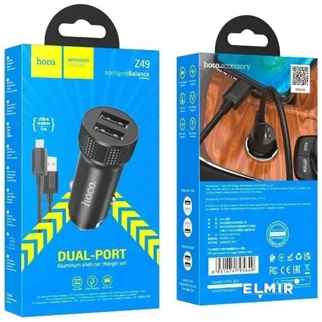 Cargador Auto Doble Puerto USB 12W + Cable Micro Hoco Z49