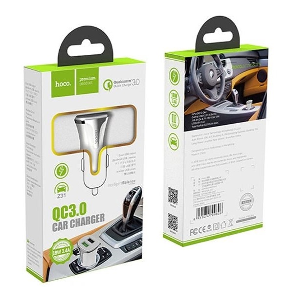 Cargador Auto Usb Dual Qc 3.0 Hoco Z31 Blanco