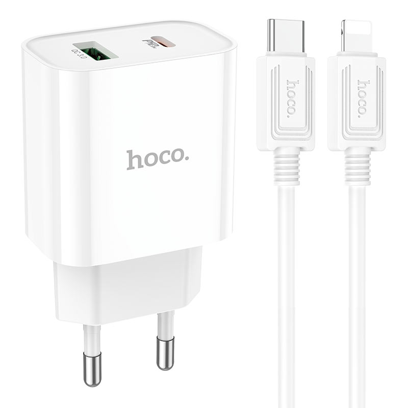 Cargador PD 20W QC 3.0 + Cable Lightning Hoco C80A Plus