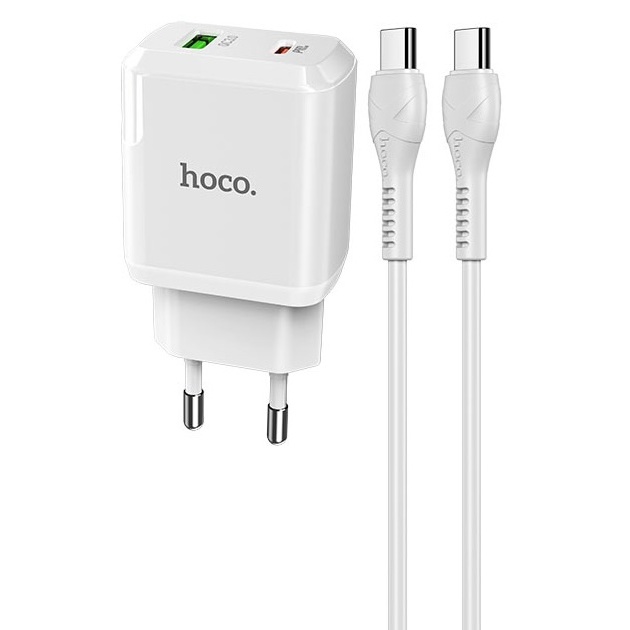 Cargador PD QC 3.0 20W + Cable USB-C Hoco N5 Blanco