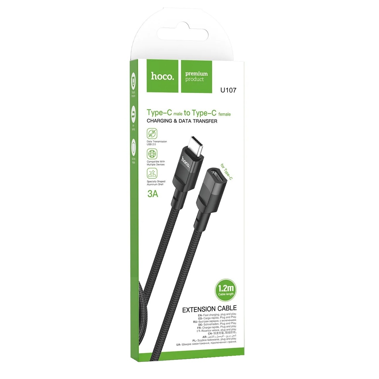Cable Extensor USB-C Macho a USB-C Hembra Hoco U107 1.2Mts